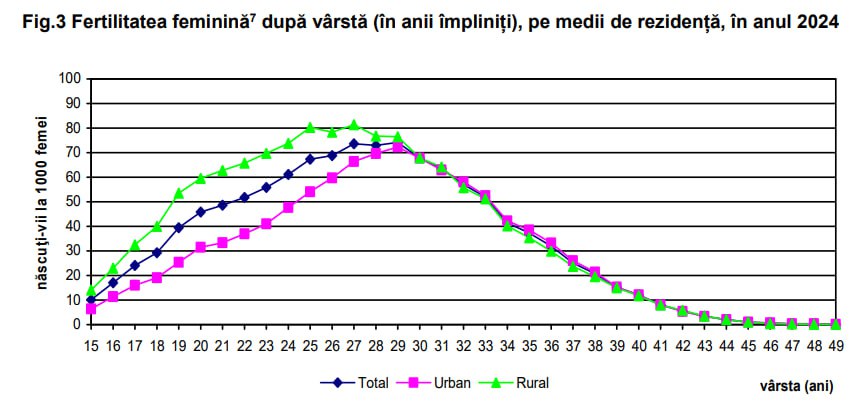Fertilitatea feminină are un vârf în jurul a 27-28 de ani, vârstă de asemenea în creștere continuă, an de an: